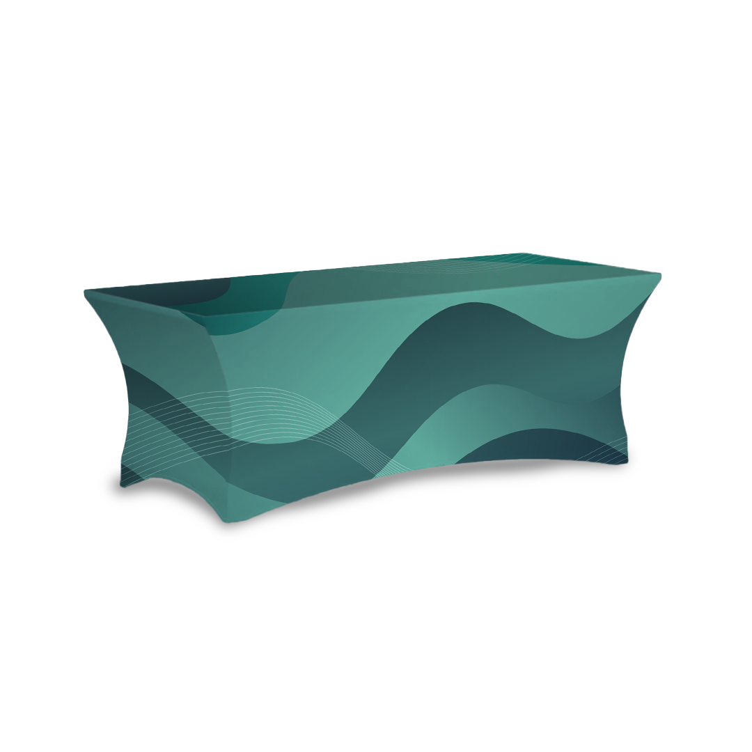 Our fully custom printed, dye-sublimated fabric table covers are available in multiple...