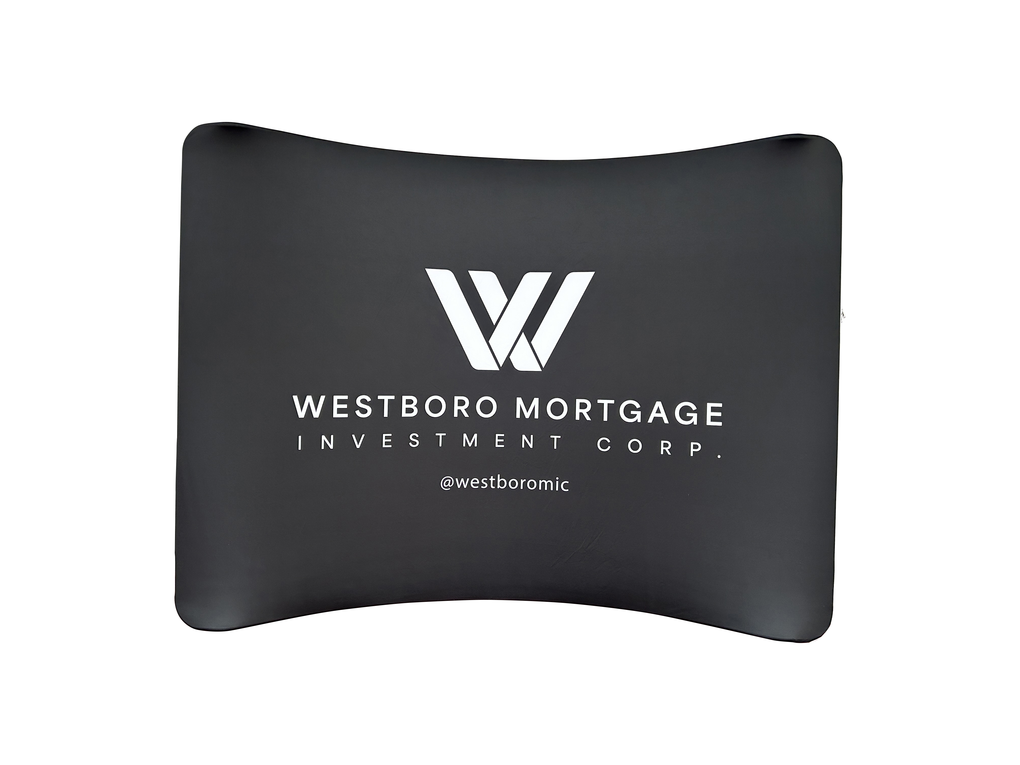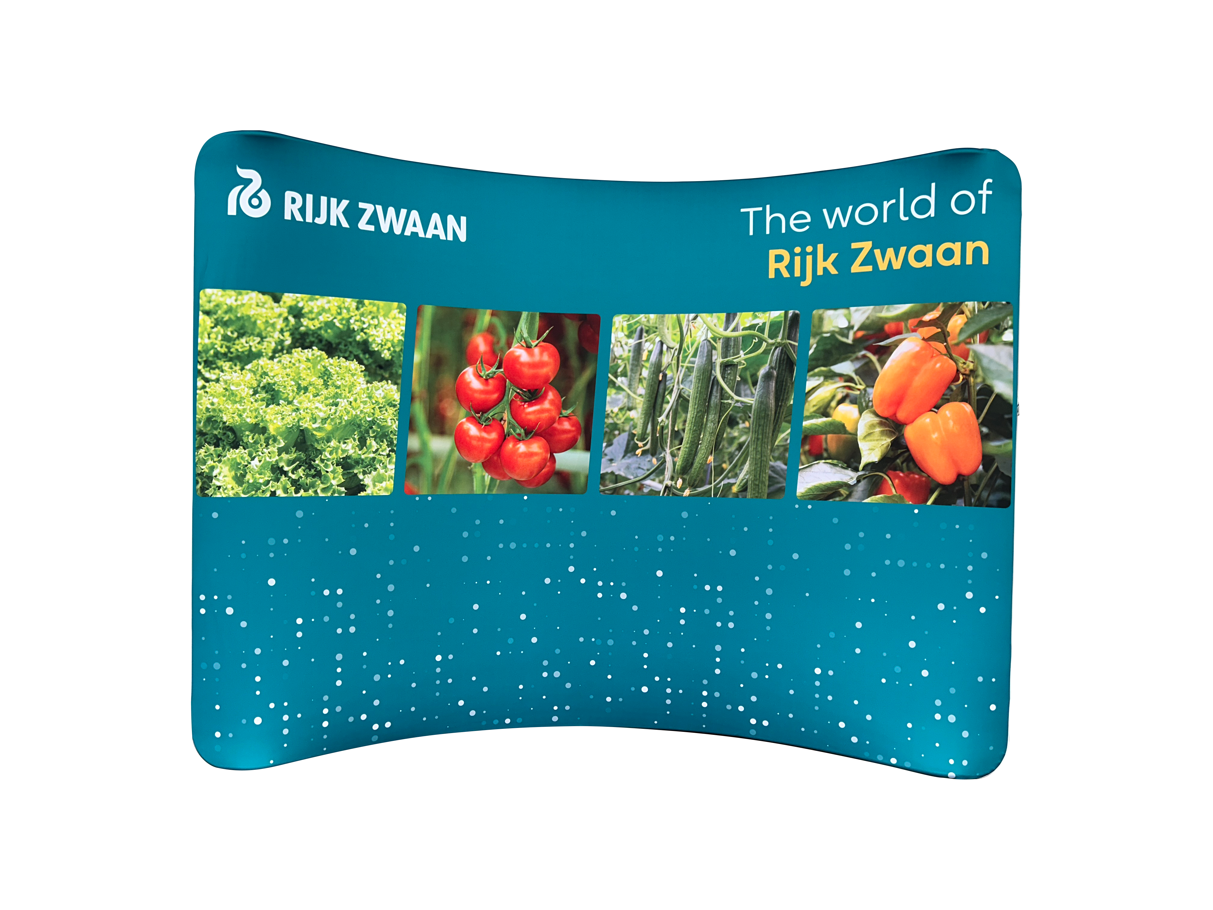 This curved, 10' wide backdrop is built with lightweight aluminum tubes and sets up in minutes. Comes with perfectly fitted dye-sublimated fabric printed with your custom artwork. Single-sided and double-sided printing are available.