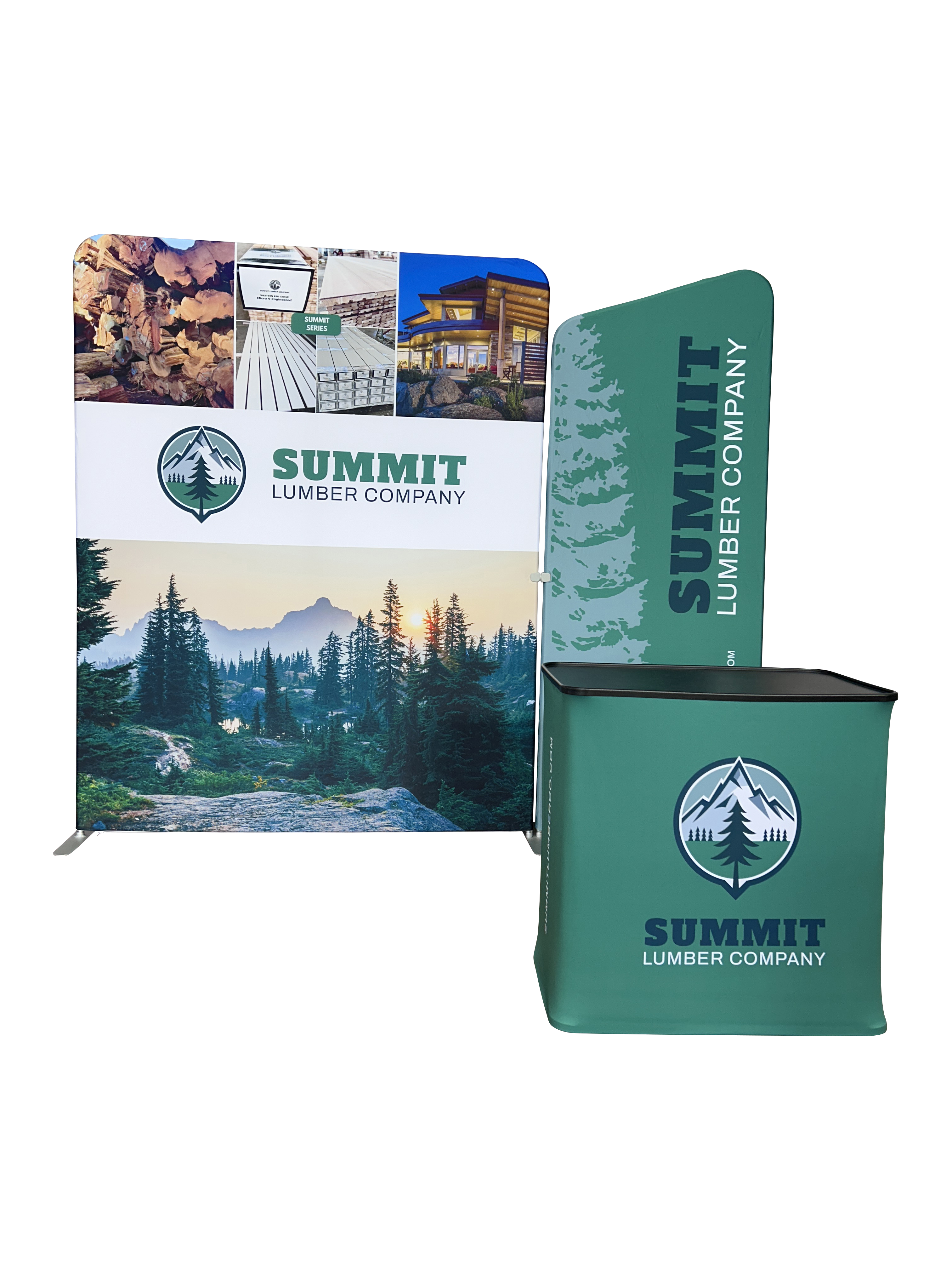 Our 10' Exhibit Kits include everything you need to make a big impact at your next trade show or event. You'll get 10 feet in width of custom double-sided printed tension fabric backdrops plus high-powered LED lights and a wooden shelf perfect for displaying brochures, promotional material, or merchandise. Everything packs up into the included hard-shell plastic wheeled case, that seamlessly converts into your booth's custom podium counter. This case allows for easy transportation in any car or plane, as you can check the case into oversized baggage. All kits include a small monitor mount with VESA 75mm x 75mm and 100mm x 100mm compatibility