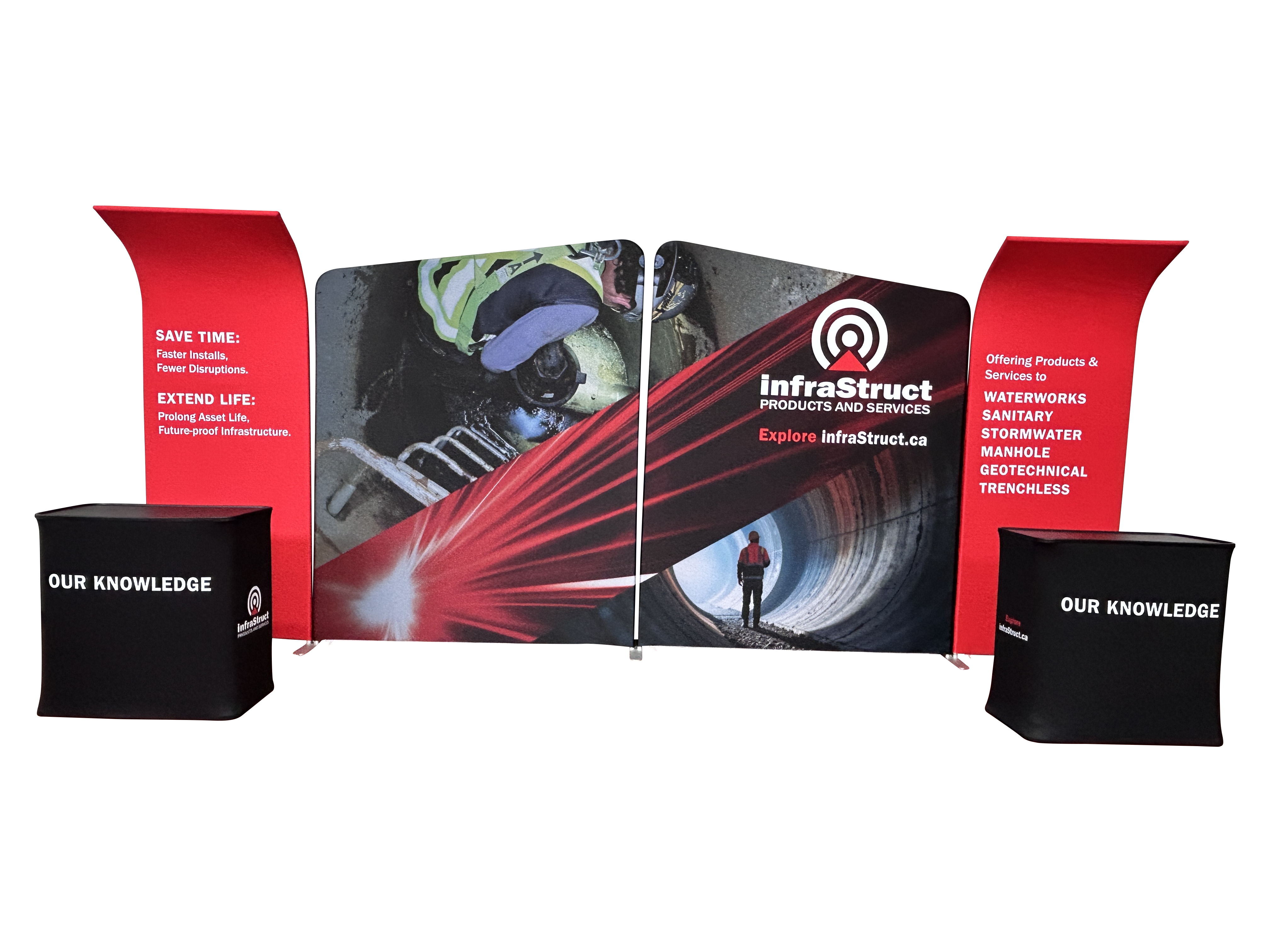 Artwork may be submitted through our online portal at purchase or by email to: sales@modularexhibits.ca. If your artwork is above 50mb per file, please contact us to share files.