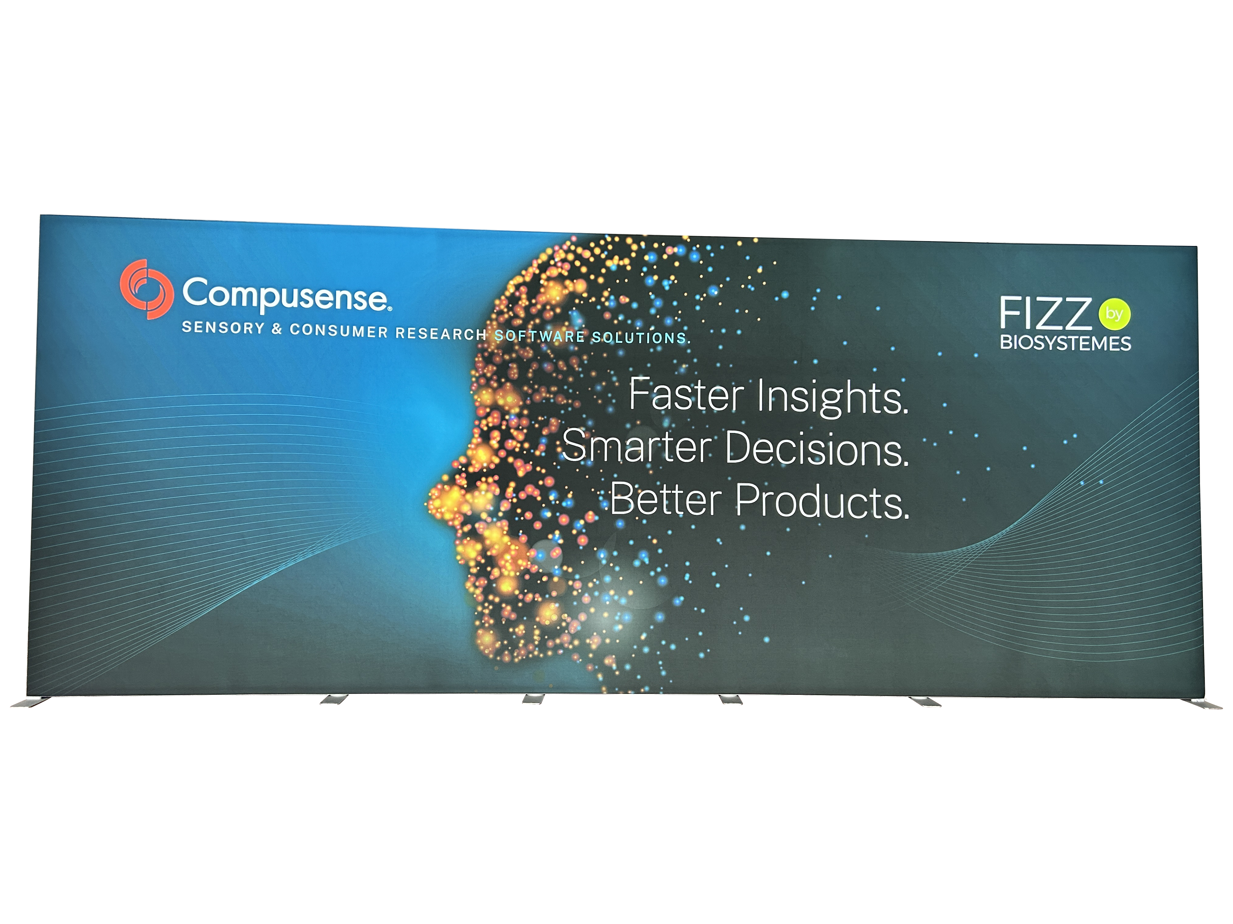 The biggest advantage of SEG frames is that they break down into small sections and feature lightweight, foldable fabric for easy and low cost shipment. Fabric can be quickly swapped out and new prints are available at a low cost compared to traditional sign printing. These SEG displays can be assembled in minutes on location, without any tools or specialized knowledge.