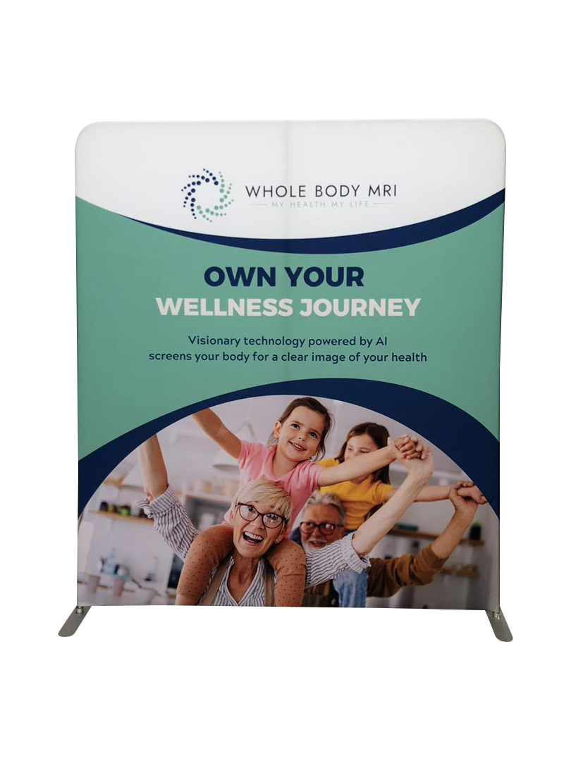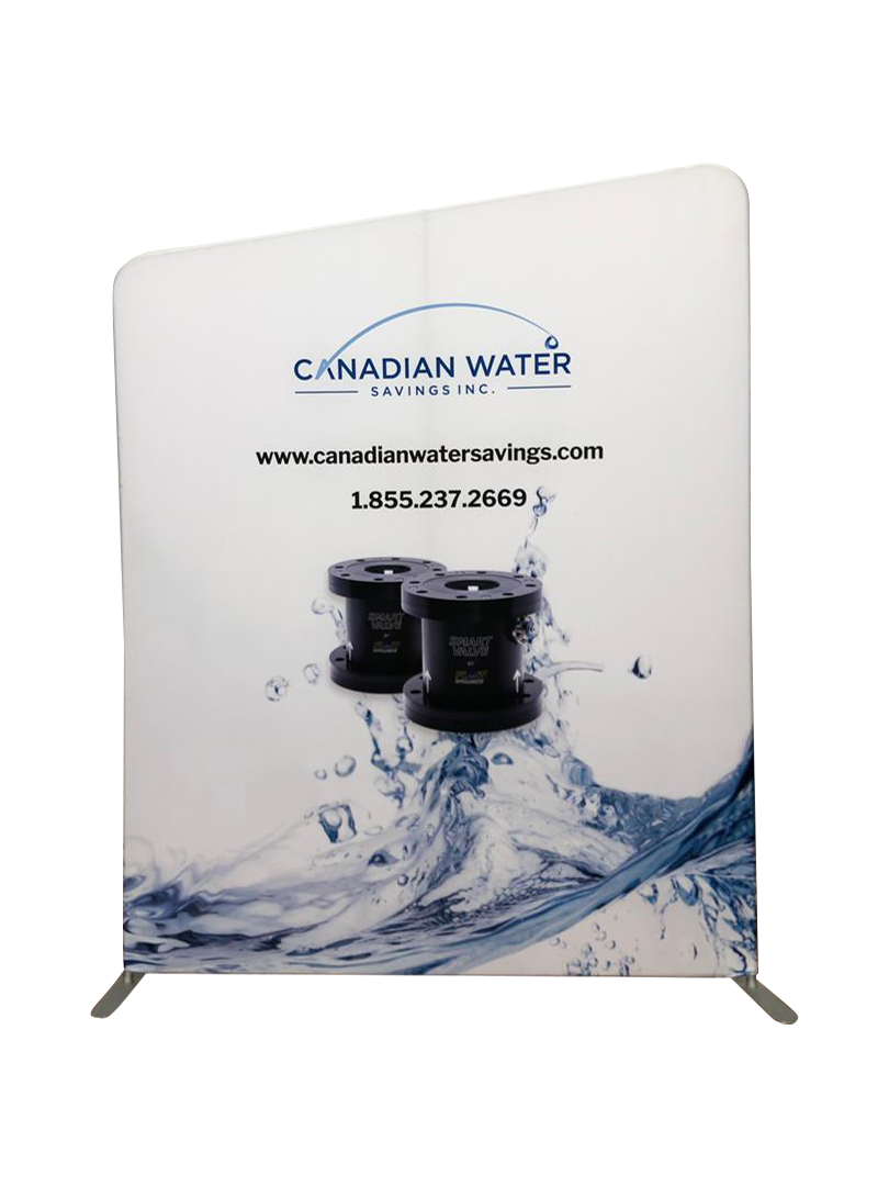 6.5' Tension Fabric Backdrop with Custom Printed Dye-Sublimated Pillowcase Fabric. Comes in a fabric case and assembles in minutes entirely tool-free. Available in single-sided (reverse is white - unprinted) or double-sided (both sides are custom printed).